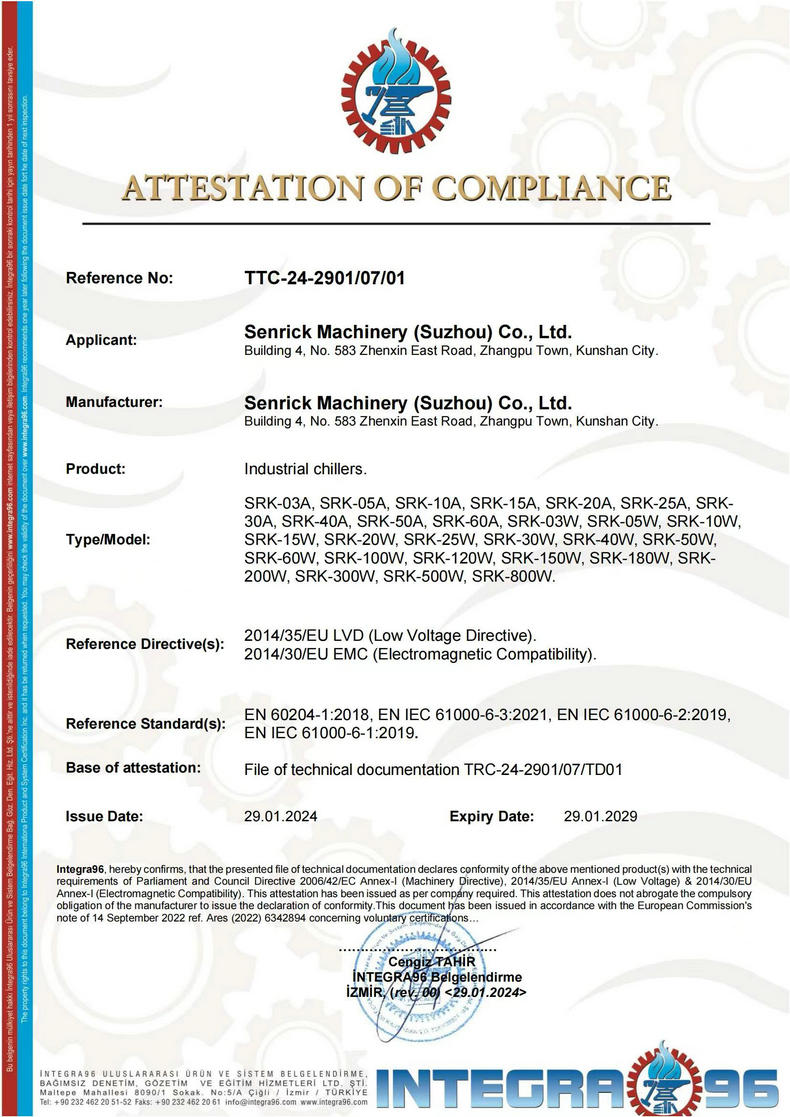 森瑞克機械(蘇州)有限公司(簡稱:SENRICK)是一家中外合作性企業,引進技術,專注于工業制冷設備,工業溫控設備,非標制冷設備,集激光,化工,真空設備輔機等集研發、生產、銷售、服務于一體的的現代化科技企業。公司擁有完善的制造設備,先進的檢測系統,獨立的加工、生產工藝,一支開拓創新專業有素的技術人才團隊,以及全面的質量控制體系,為產品質量的不斷優化提供了強大的保障,以確保滿足不同市場的各種需求。經過多年的努力企業相繼研發生產出了工業冷水機,工業冷風機,工業冷油機,工業機,低溫冷水機,低溫冷風機,低溫冷油機,螺桿式冷水機...